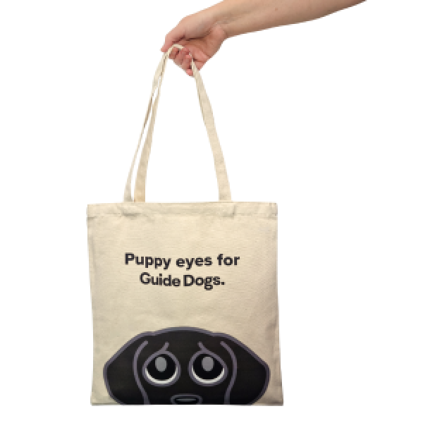 Carry your essentials while supporting a great cause with this charming cotton tote bag. Featuring an adorable “Puppy eyes for Guide Dogs” design, show your love for dogs while helping raise awareness for Guide Dogs.
